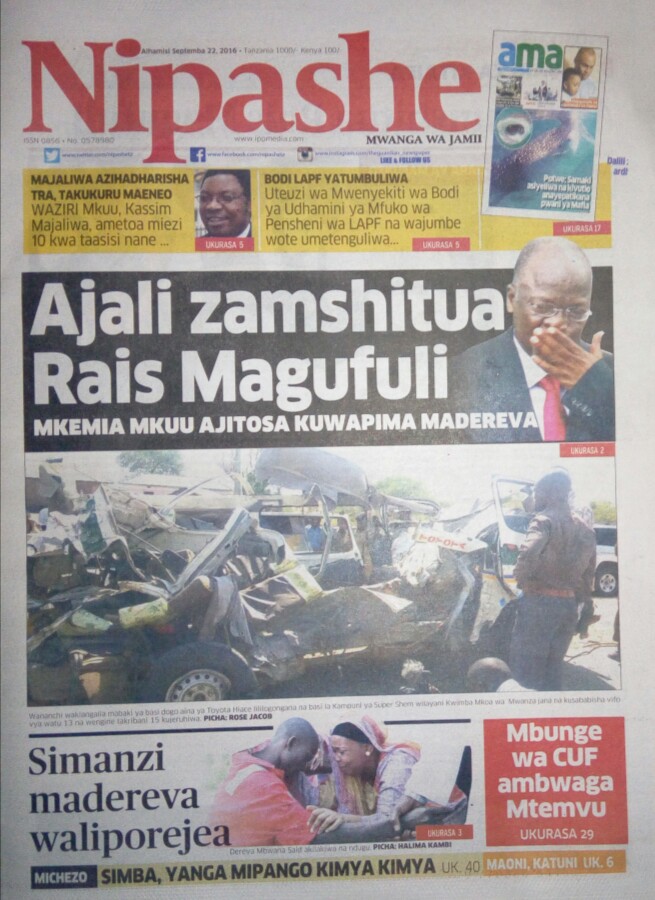 Magazetini leo Alhamis,Septemba 22,2016 A+ A- Print Email Magazetini leo Alhamis,Septemba 22,2016 TANZANIA UK Karibu tena katika blog hii